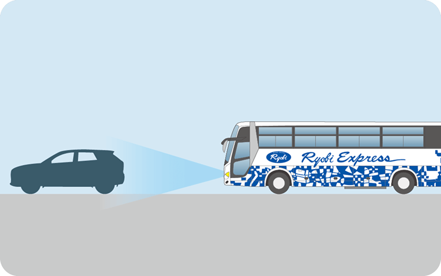 - 前を走る車との距離や速度をレーダーで常に監視し、危険がある場合はドライバーに警報で知らせます。