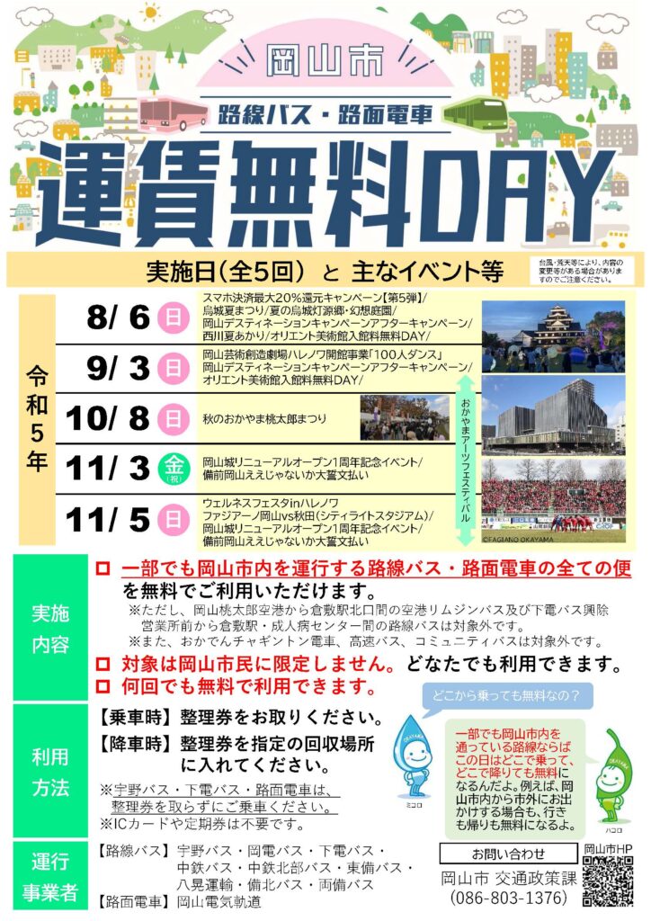 ◆岡山市 路線バス・路面電車 運賃無料DAY