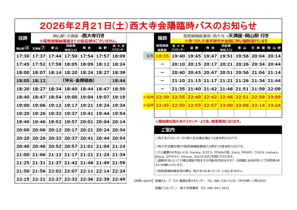 2026年2月21日(土) 西大寺会陽『はだか祭り』 臨時バス